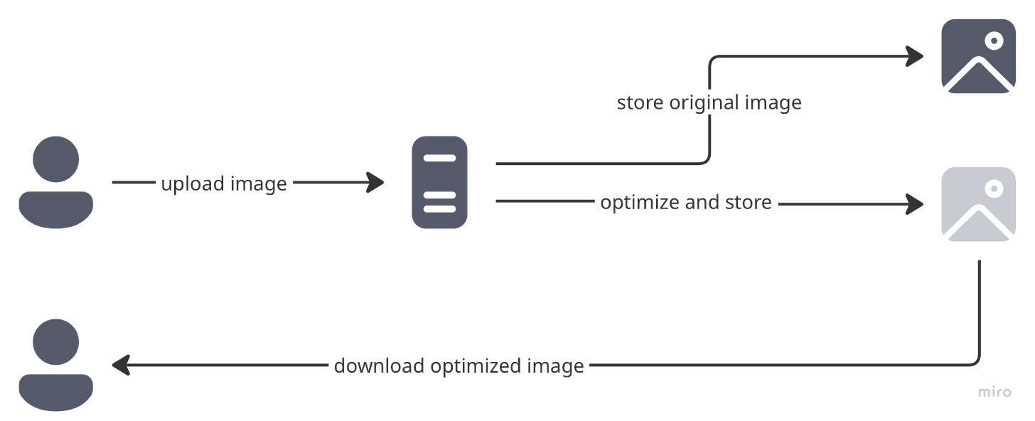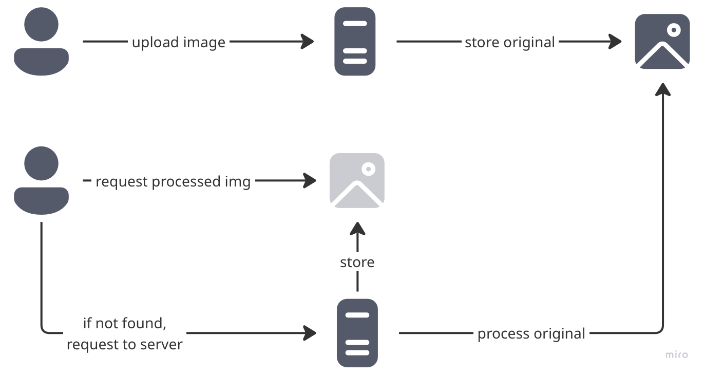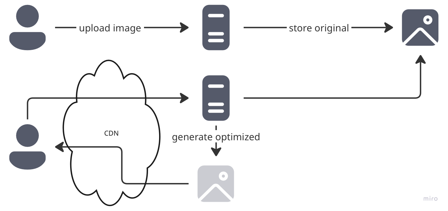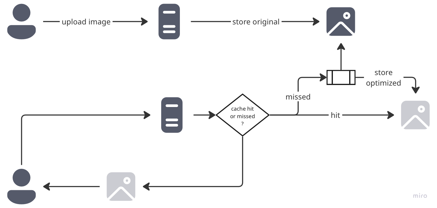 Each download request goes through this cache proxy. If the optimized image exists, it’s served. Otherwise, the image processing proxy is hit to generate and store the optimized image.